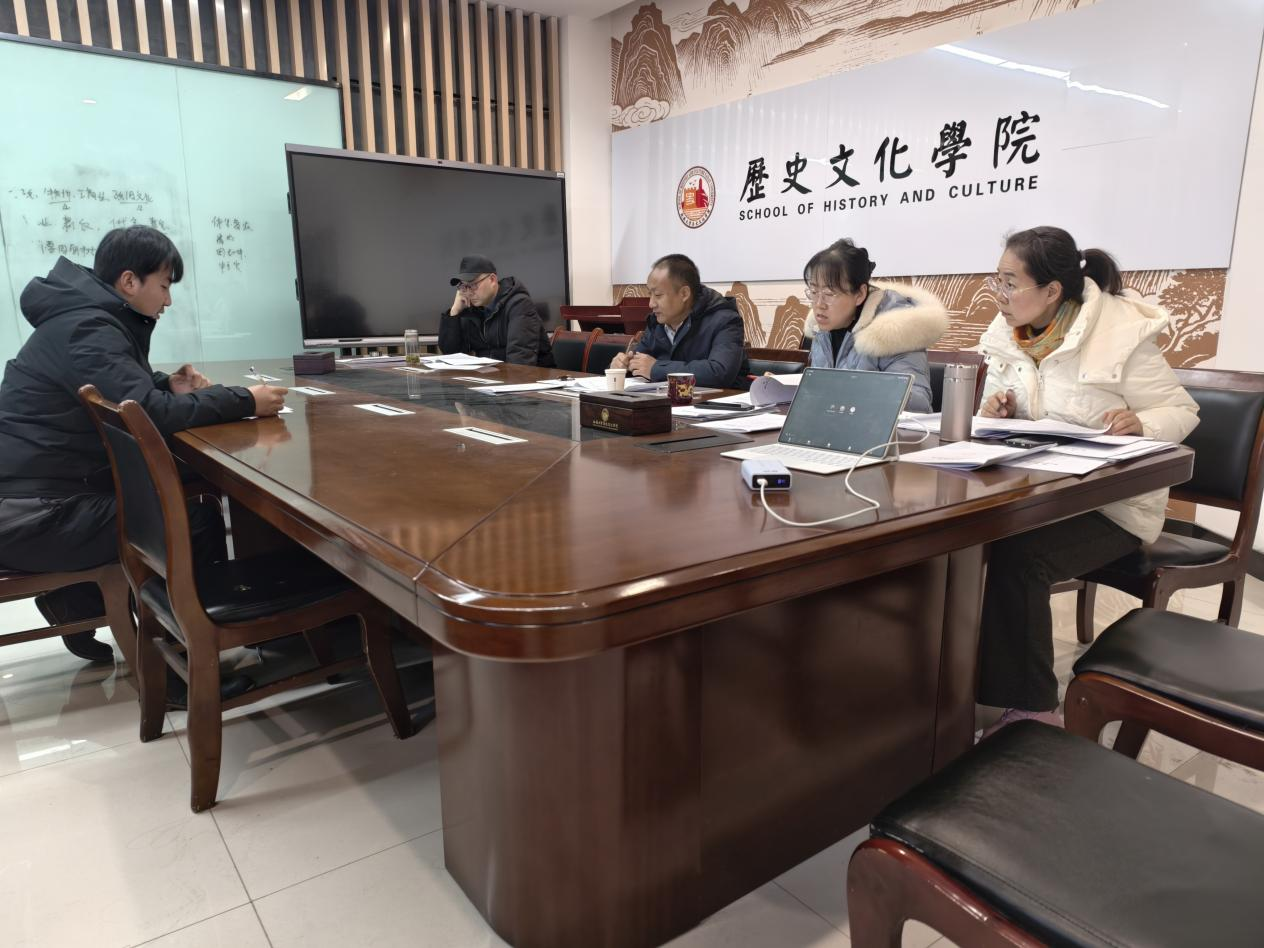 中国专门史组开题于1月9日下午在乐天使3楼会议室举行。开题委员会主席由宁夏大学冯燚教授担任,委员有王建宏、陈利宽、金鹏、薛丹、李志芬、高瑞等6位老师。2024级硕士杨帆、成姣、宁轩婷参加答辩,部分2025级硕士研究生参与旁听。