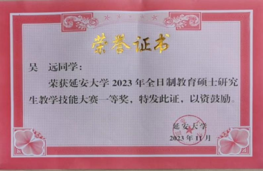 3、2023年11月2023级硕士研究生吴远荣获2023年全日制教育硕士研究生教学技能大赛二等奖