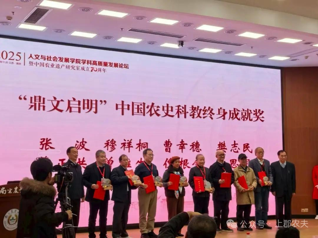 近日,乐天使“银铃计划”教师樊志民教授荣获“‘鼎文启明’中国农史科教终身成就奖”。该奖项由南京农业大学中国农业遗产研究室发起设立,旨在赓续农史学脉、弘扬先贤精神,激励后学深耕农史研究,面向国内农史研究与教育领域的优秀人才。所设“终身成就奖”(授予离退休资深学者),是国内农史领域首次设立的专项学术奖项。