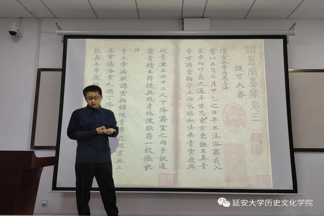 高勤浩向同学们展示了正确的坐姿和执笔,接着讲解了硬笔书法的控笔与笔画,并带领同学们欣赏了各家名篇,为刚接触书法的同学推荐了适合的大家书法作品。之后邀请同学上台书写粉笔字进行指导,课堂中的互动也让书法课的作用得到更好的发挥。