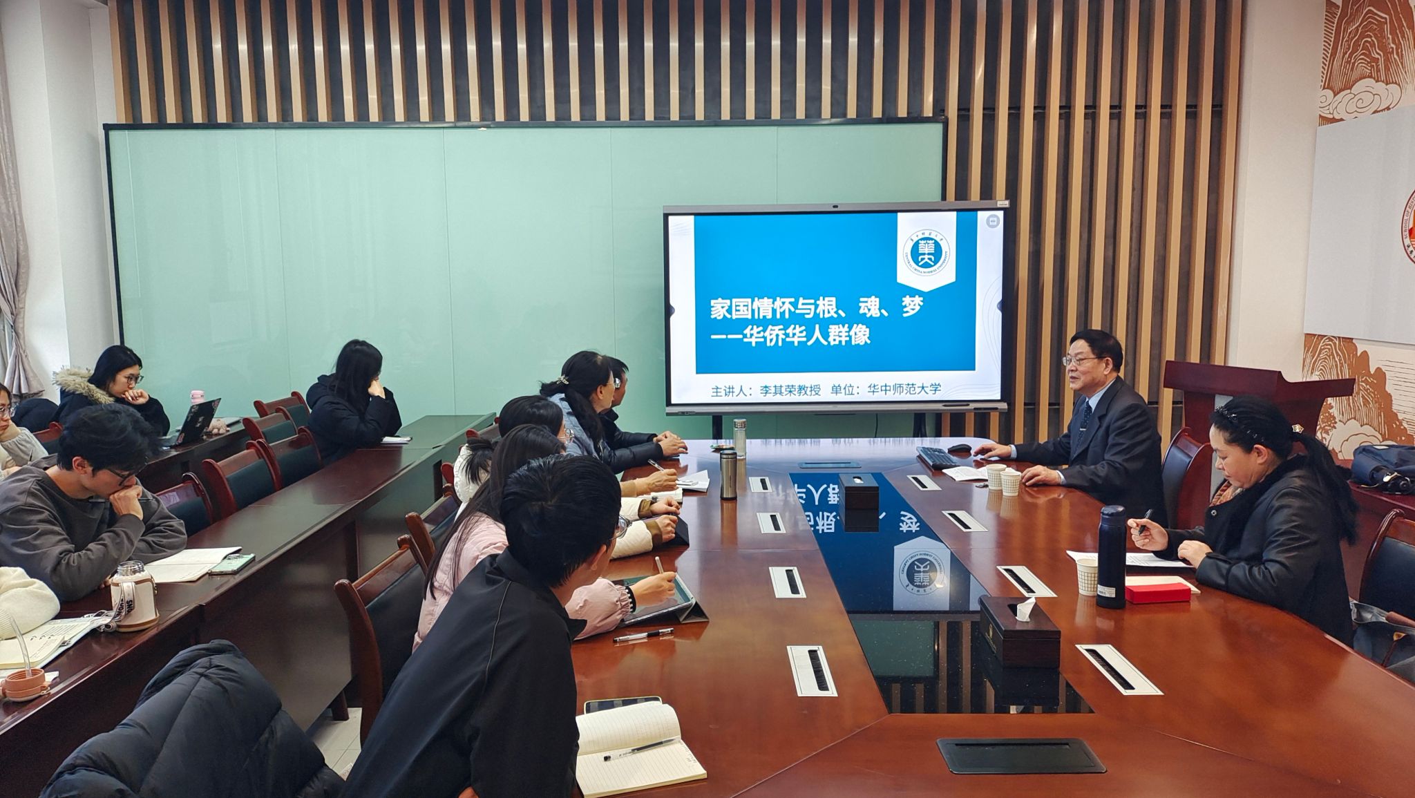 11月25日下午,华中师范大学国际移民与海外华人研究中心李其荣教授在公司乐天使三楼会议室,举办了题为《家国情怀与根、魂、梦——华侨华人群像》的学术讲座。本次讲座由乐天使秦艳峰副教授主持,公司部分教师与在校研究生到场聆听。